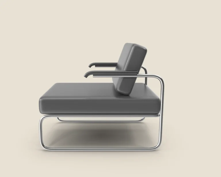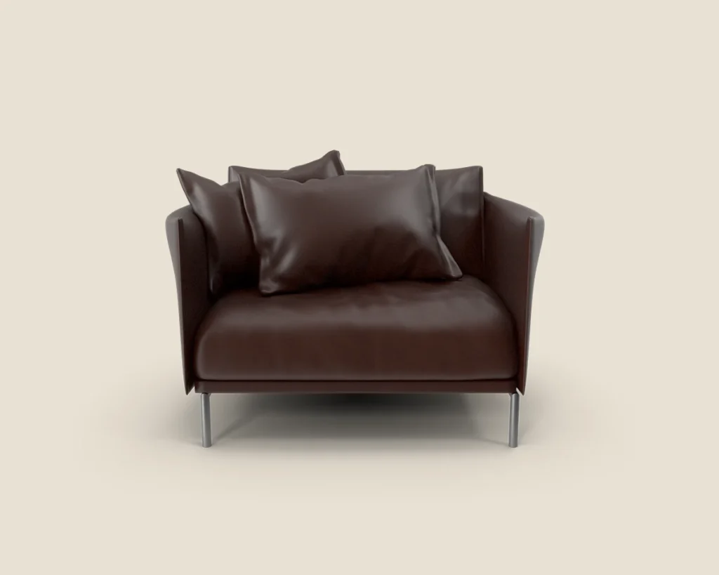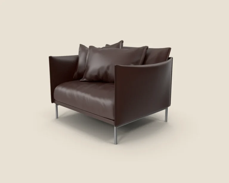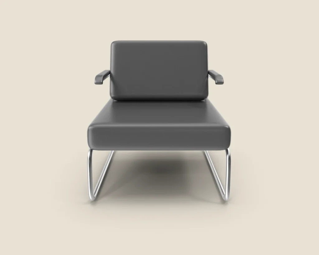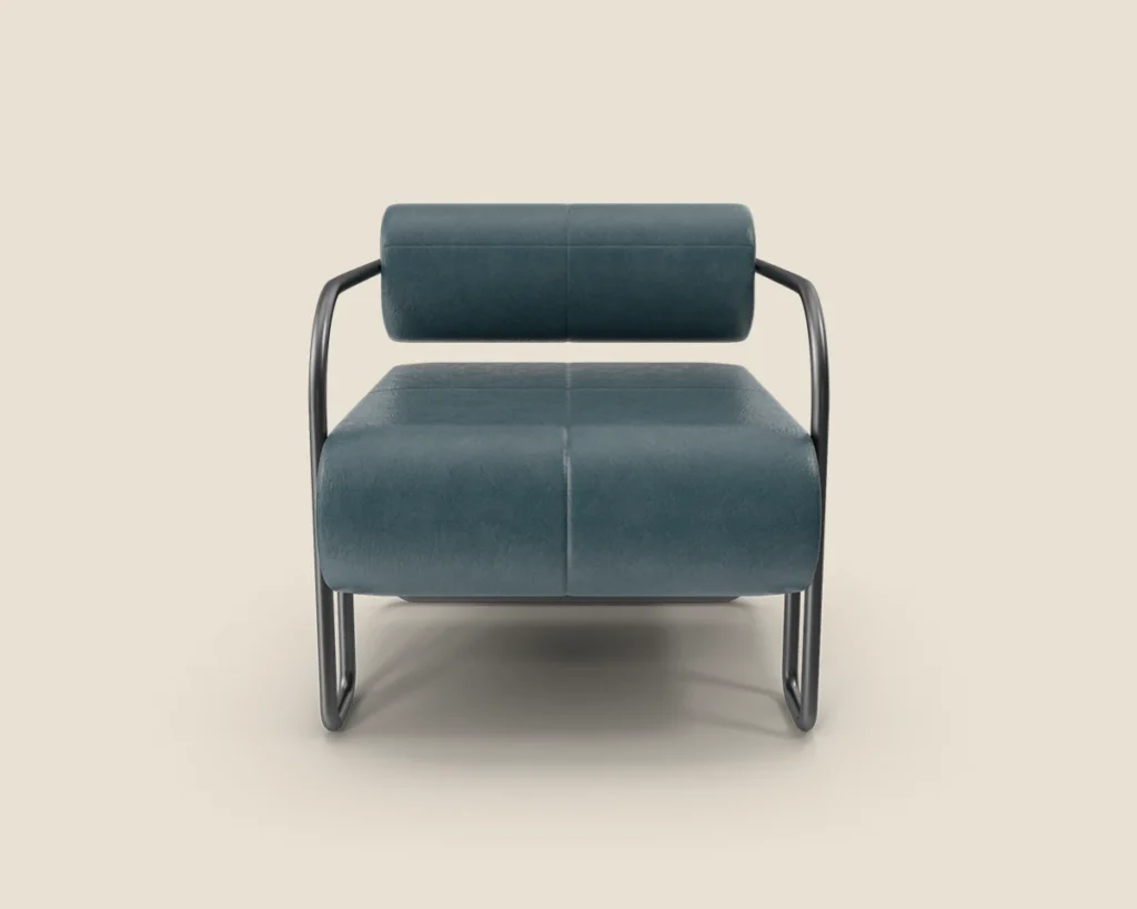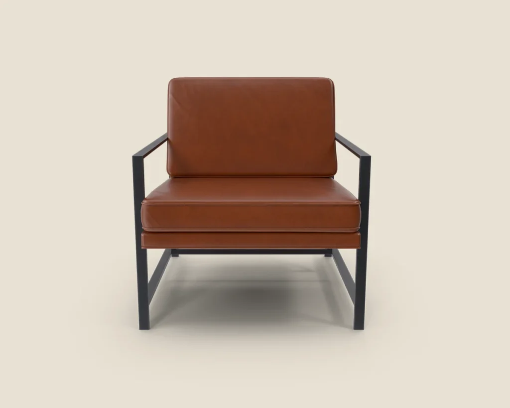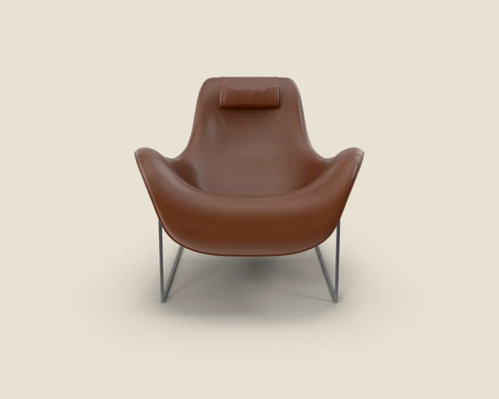 A stylish and comfortable lounge chair with a sleek metal frame and premium leather upholstery. Ideal for modern spaces