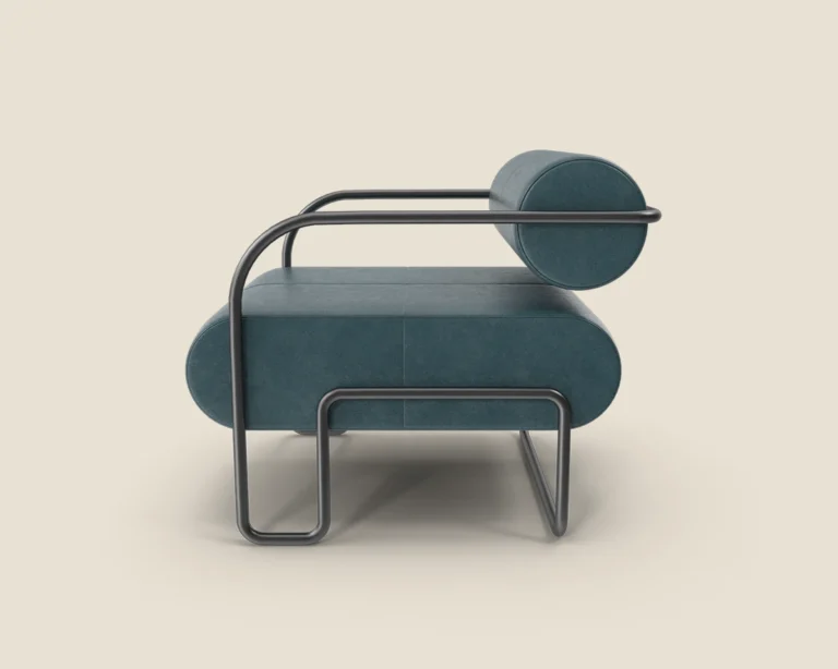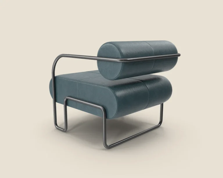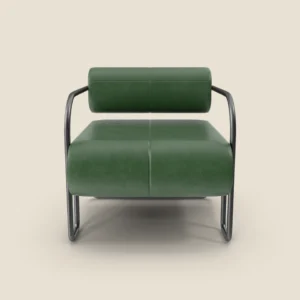 A stylish and comfortable lounge chair with a sleek metal frame and premium leather upholstery. Ideal for modern spaces
