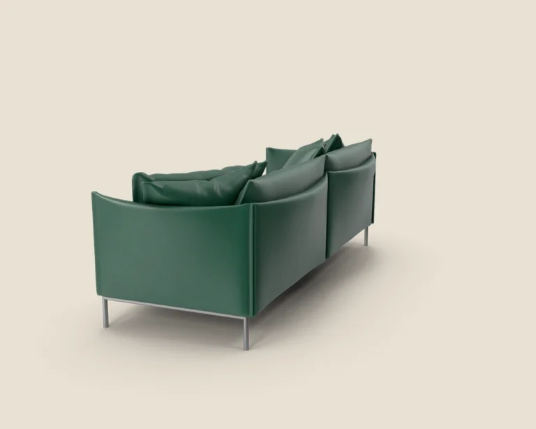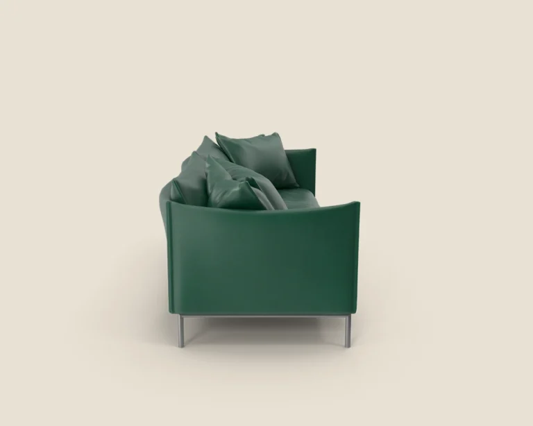 The Emerald Comfort sofa is a luxurious seating option that brings a bold touch of color to any living space. Wrapped in high-quality, soft leather, this sofa offers both style and substance. The deep green hue adds a sense of calm and sophistication, while the plush cushions provide ultimate comfort. Supported by sleek metal legs, the sofa exudes a modern charm perfect for contemporary interiors. Whether for lounging or entertaining, the Emerald Comfort sofa is a stylish centerpiece.