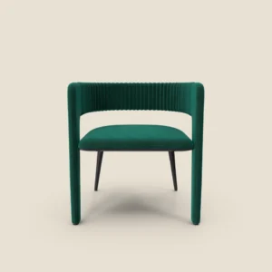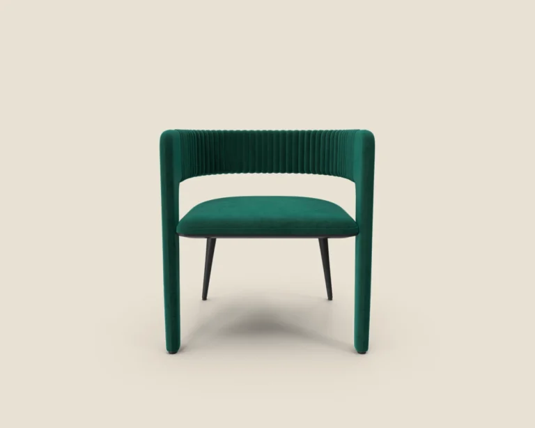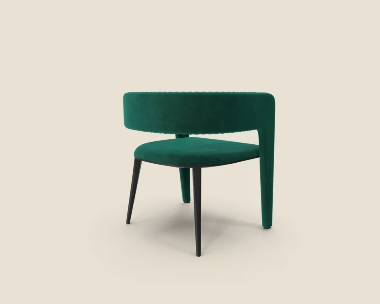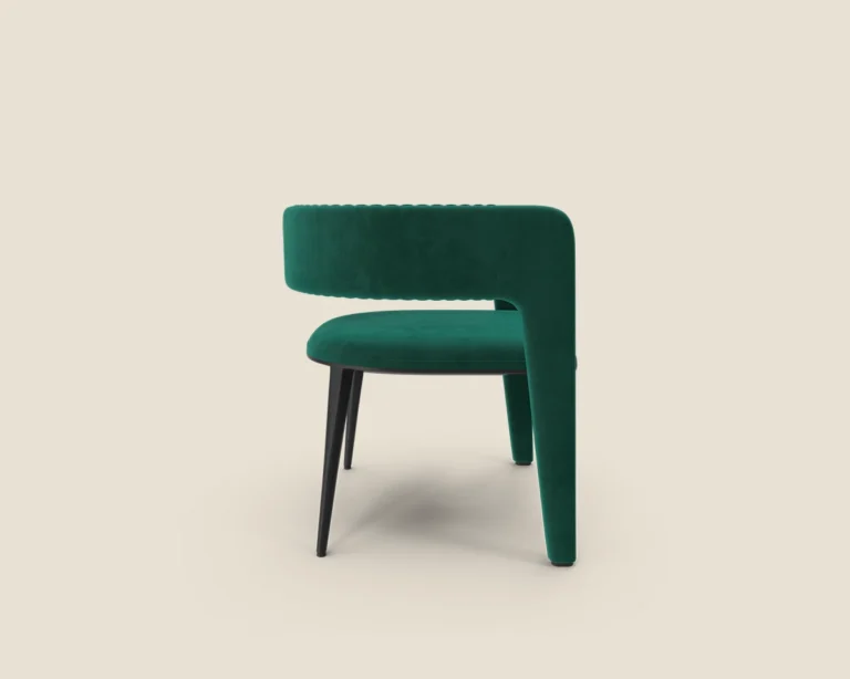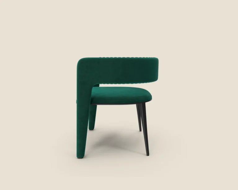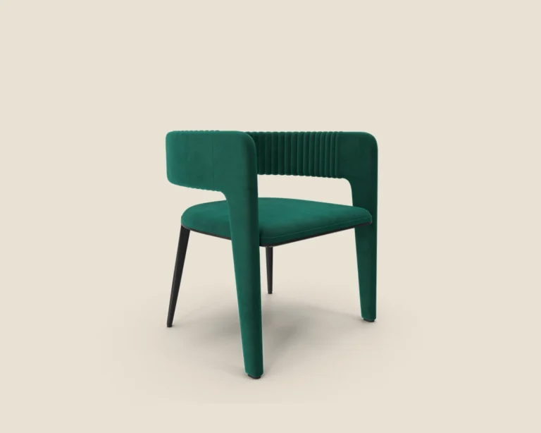 The Velvet Curve chair combines modern elegance with luxurious comfort. Wrapped in soft, plush velvet, its unique curved design offers both style and ergonomic support. The ribbed detailing on the backrest adds a refined touch, while the slim, tapered legs provide a sleek, modern silhouette. Whether used as an accent chair or dining chair, the Velvet Curve is a versatile addition to any contemporary space, blending sophistication with a pop of color.